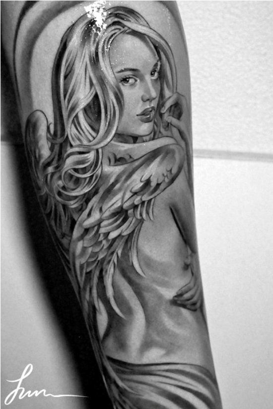 La elegancia en los tatuajes de ángeles es lo que mas destaca cuando vemos uno bien realizado.