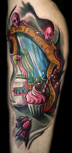 Uno de los estilos mas espectaculares sin duda son los tatuajes en 3D. Por su fuerza y realismo no pasan por ser precisamente uno de los tatuajes mas discretos, son piezas normalmente grandes y llenas de detalles que le dan una expresividad al diseño, que hace parecer a este vivo y fuera de la piel.Los retratos son otro de los temas que puedes considerar en tu tatuaje, piensa que si lo que necesitas es llevar el recuerdo de un ser querido la mejor de las opciones es el brazo, por lo visible y por la fuerza que tiene. No olvides esto que es fundamental, si vas a hacerte un retrato en la piel no te pongas en manos de un tatuador que no domine este estilo, si lo haces bien tendrás una obra de arte como las que te muestro abajo, pero si escoges a un tatuador que no tiene experiencia en este estilo...entonces amiga mía...tendrás un triste recordatorio para siempre de tu error. Los tatuajes de retratos son un arte en sí y merecen el mayor de los respetos.Tatuajes Divertidos de colores y fantasía.
