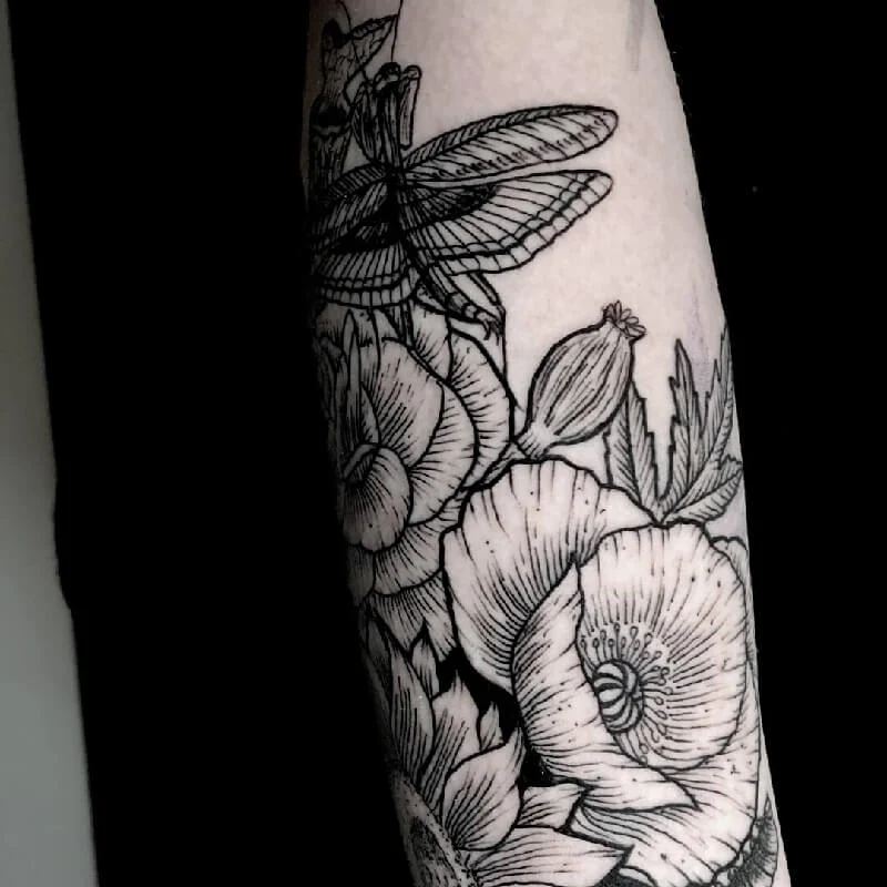 El grabado es una de las técnicas de tatuaje más elegantes. Se combina con cualquier estilo de ropa y no crea una sensación de pretensión, exceso. Un tatuaje de estilo grabado es adecuado para aquellos que buscan simplicidad y, al mismo tiempo, gracia en las líneas. Las líneas de los tatuajes son claras, nítidas, no hay medios tonos ni degradados. Estas aseguran que el diseño conserve un alto nivel de detalle y, al igual que el arte grabado en madera, ¡están hechos para durar! Este estilo apareció hace relativamente poco tiempo, a principios de la década de 2000. Aunque tiene serias raíces históricas en la tradición occidental. El concepto de grabado en el arte apareció alrededor del siglo VI d.C.