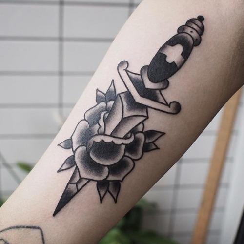 Los cuchillos o puñales existen para defendernos o para usarlos a la hora de comer, cazar etc.. En este sentido, los tatús son un fiel reflejo de lo que un instrumento tan cotidiano es capaz de hacer. Desde cortar y dividir, a apuñalar y matar. Cuando tenemos una mala fase en nuestra vida y lo que necesitamos es romper con ello, nos gustaría poder cortarlo de una cuchillada ¿verdad? como dice el refrán : "a las penas puñaladas". Por otro lado, puede que estés pasando por un mal momento y necesitas cortar con malas experiencias, relaciones o con el momento en el que te encuentras, escoge como próxima idea para tu plantilla, el puñal.