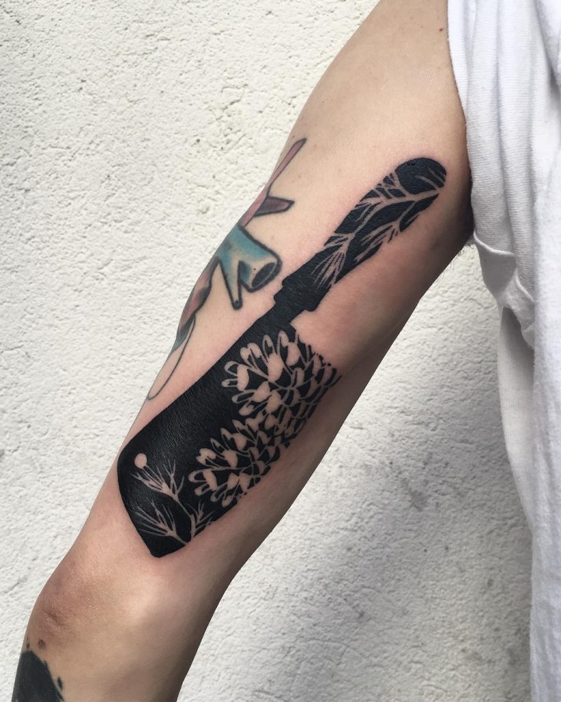 tatuarse un cuchillo. Las piernas, los brazos en la parte interior o la